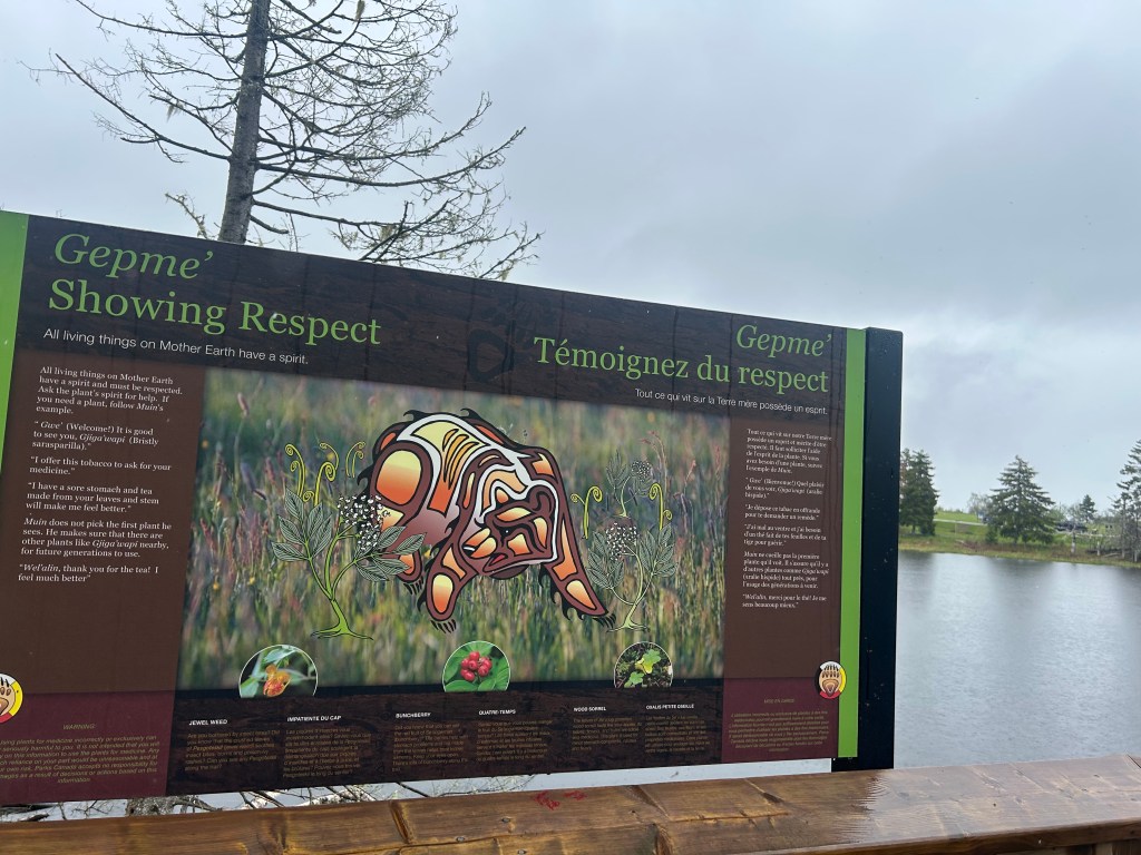 We stopped by the information center and got some ideas to shape our time here. We aren’t feeling overly ambitious and yet want to explore the area. There was a small walk around a pond called “Medicine Lake” that has signage in English, French and the language of the First Nations tribe that lived here. The descriptions on the signs about the way they use plants for medicine was a collaborative effort with the First Nation tribe. It’s so refreshing to see how out front they are in recognizing the First Nations, that this was their land and their culture, language and traditions deserve recognition and celebration.