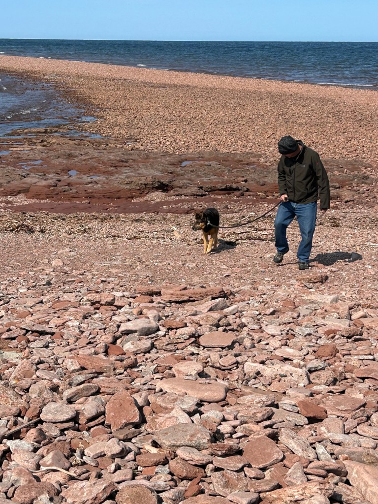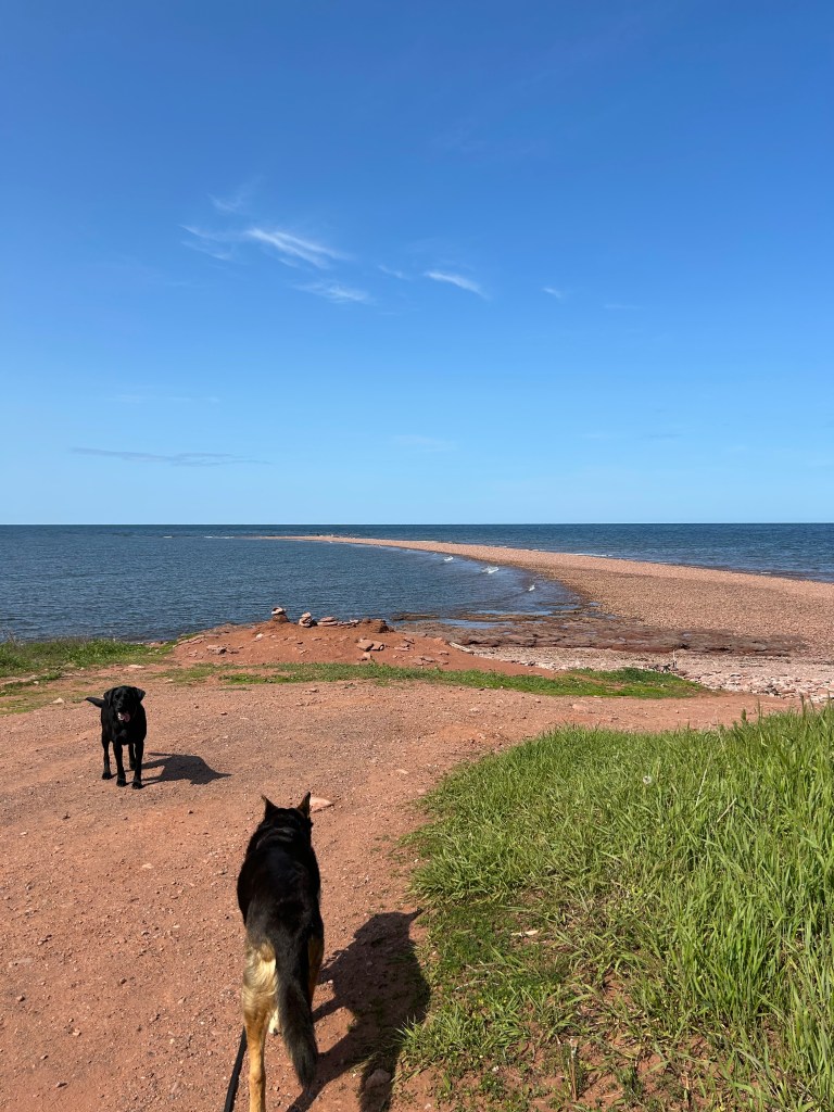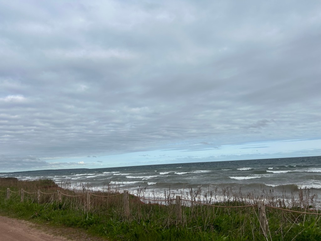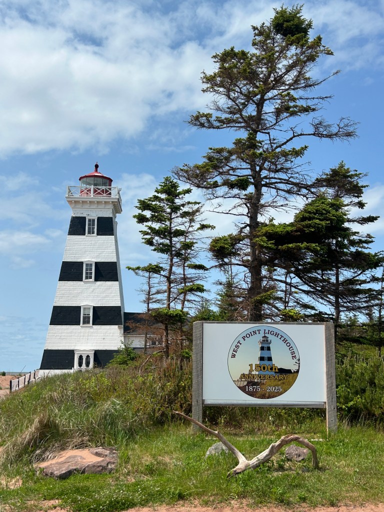 The luxury of staying in one campground for several days in a row is you get to lounge around in the morning and take off for a driving tour for the other half of the day, no pressure. Today, we went to the western most end of the island, West Point, where the rewards were a view of the North Umberland Strait and the lighthouse built in 1875. The beach was unusual compared to the other beaches on PEI we’ve been to so far: it was a very fine, dune-like yellow sand. The other beaches have all been comprised of small to medium size stones.