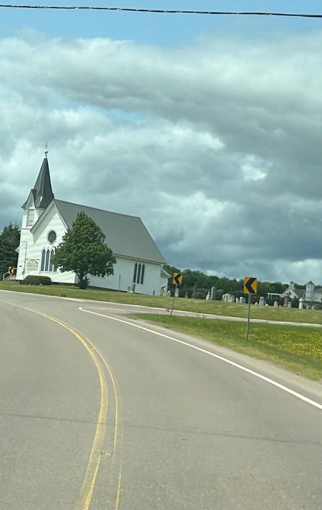 As we drove west, the land flattened out and agricultural use turned to ranches, with more grazing cows and some horses. Our views narrowed from the open rolling farmlands to small two lane country roads flanked by thick walls of mostly pine trees. The area felt more desolate, although small villages were scattered along the way marked once again by ubiquitous white churches, and a smattering of shops and homes for a block or two before being replaced by empty winding roads and countryside.