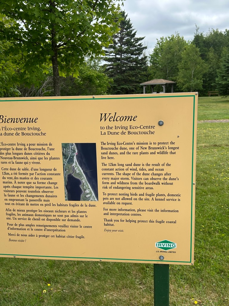After recommendations from our Newfoundland camping friends who live in Shediac, Peter stayed back with the dogs and I took off for Bouctouche Ecocentre, a long boardwalk over a stretch of dunes along the Atlantic Ocean. My GPS doesn’t recognize French so despite my heart and mind telling me to turn right and continue towards the water, I opted to follow my GPS which took me in the opposite direction. I got to “Reserve” which I thought might be a close guess to where I wanted to go only to discover a dead end. As I was trying other options on my phone, a burly guy came over and said, “You lost? I looked over at my house and didn’t recognize the truck.” Fortunately, his tone was unquestionably friendly and light hearted. When I told him where I wanted to go, he said, “Turn left then right and head toward the water.” Duh.