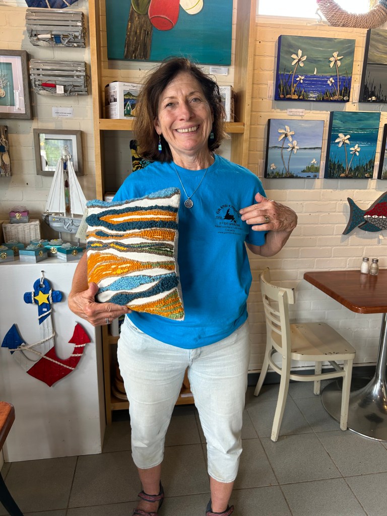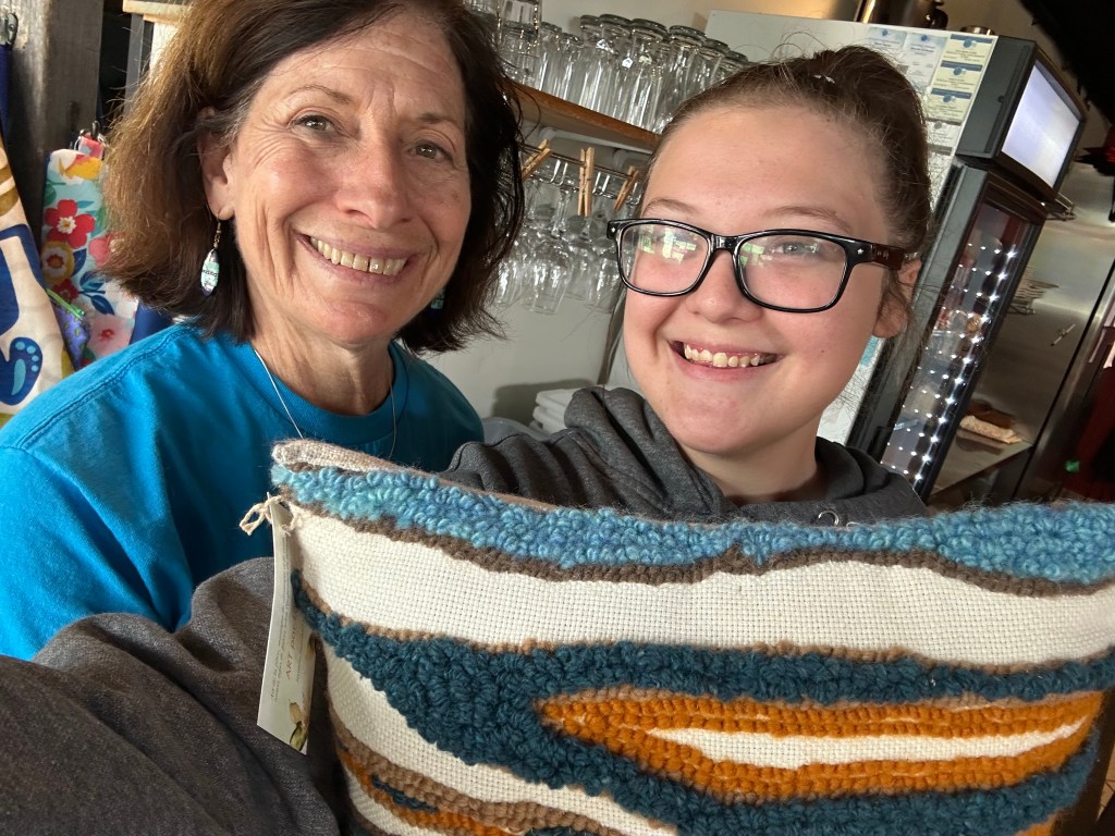 It was a quaint little shop with creative, beautiful works and the perfect stop. I ordered clam chowder and a latte and discovered Larraine’s work. I couldn’t resist. Not only do I appreciate her artistry, I wanted something to remember her and her husband, Trevor, so I bought a pillow. That launched me into a conversation with Nicole, the young woman running the cafe. We had a fabulous discussion about Trump politics, immigration, women’s rights and the future for her generation. She said, “I’m 18 and have my life ahead of me but I feel like women’s rights are going backwards. And I can’t believe how they’re treating immigrants! Yes, we’re Canadian, but we still need to stand up for what we know America stands for. It’s so hard to watch from here.” She mentioned that her father and grandfather are Trump supporters. When I asked her where she got her ideas, she said while she hates social media, that’s where she gets her information. She talks to her dad and grandfather about facts and hopes they’ll come around.
