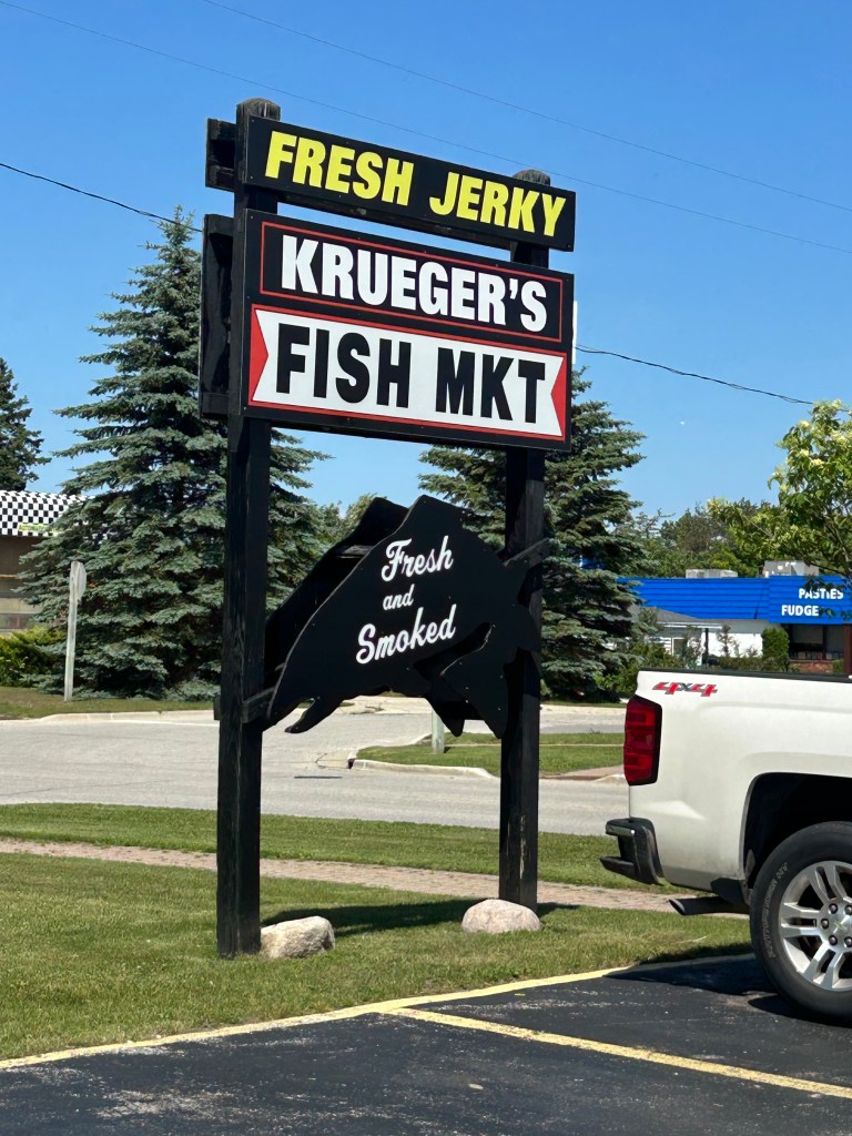 I decided to drive through Mackinaw City and found it to have more fudge shops per square mile than wherever the fudge headquarters of the world is. I headed back to the laundromat but couldn’t pass up a fresh and smoked fish market. You could tell it was the real deal. It was a small, unadorned shop and had huge racks of fish smoking outside (and I don’t mean the fish were smoking cigarettes, if that’s how it sounded).