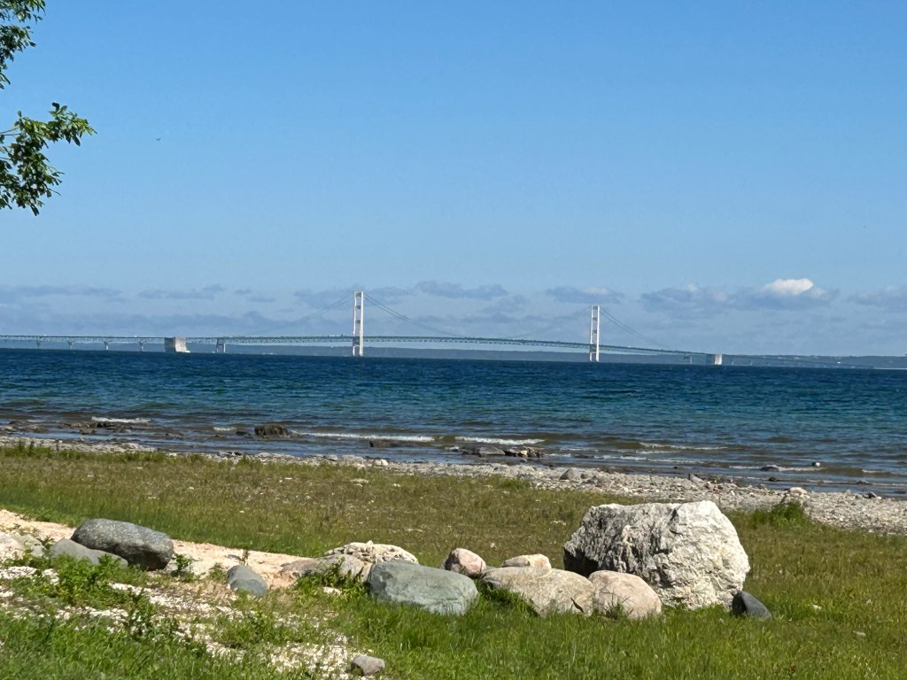 We loved our stay at Mill Creek Campground in Mackinaw City but there were definite downsides: too many people, too loud, too touristy, and the antithesis of getting away into the more ensconced-in-nature approach to camping. However, this campground got so many things right that it overcame these shortcomings. The access to the beach and Lake Huron were a minute away as was the 18 hole golf course equivalent of a dog park. Everything was nearby (including the neighbors and their music).