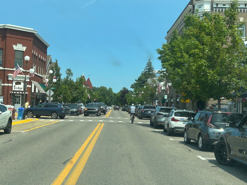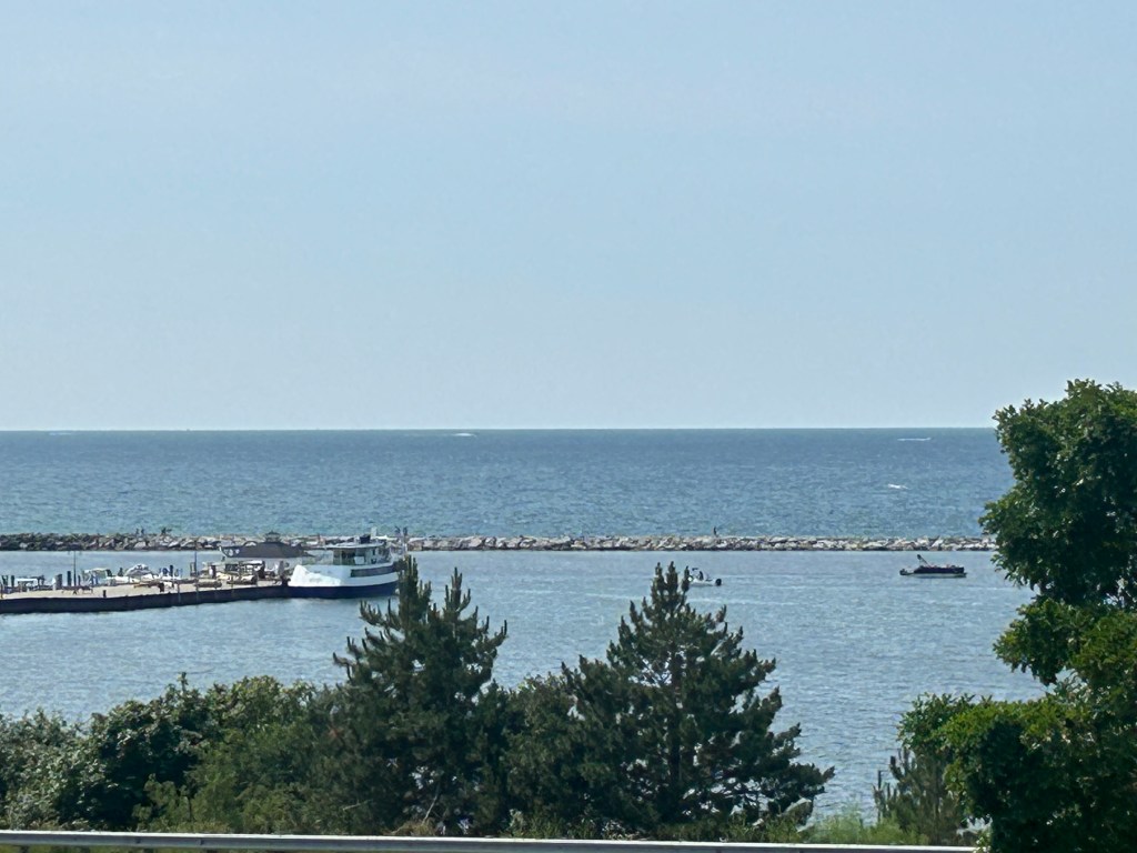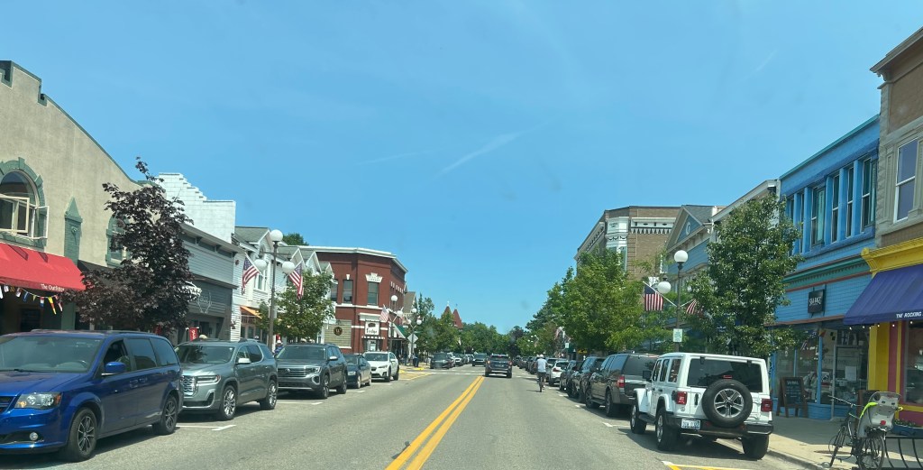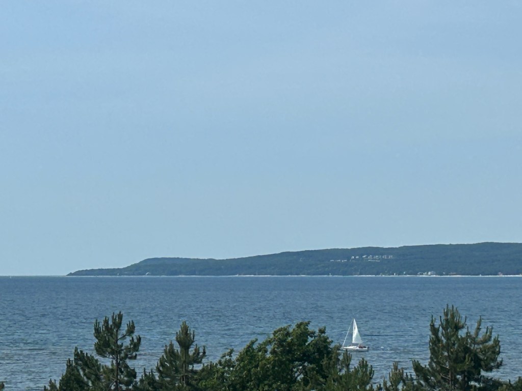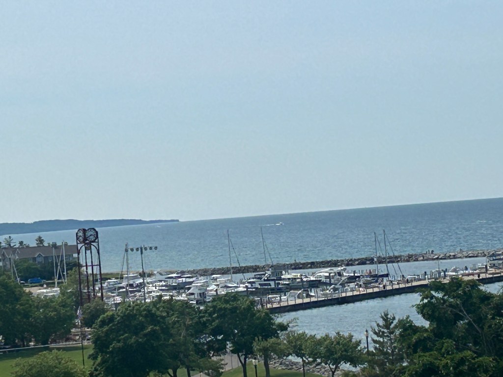 Picking up Peter after 3-1/2 hours at the Historic Society, he wanted to make one more stop at the Petoskey Chamber of Commerce for a last bit of data gathering. I dropped him off and went to a viewing point of Lake Michigan. I grew up on this lake and I am finding great comfort and soul soothing as I look out on its vast blue horizon (even if I’m facing west instead of east as I did growing up).