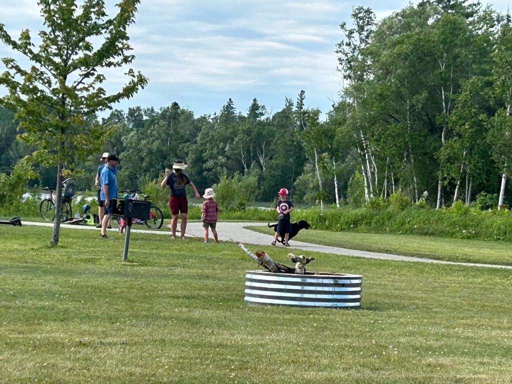 Talk about freedom. Being on the road means, in part, that there’s little routine or obligation. If you want to stay in a rut, you can, but it takes more effort. This year, we could have gone into Harbor Springs or Petoskey to see how they celebrate July 4th with parades and other events. But we chose to hang out at our campsite, making a delicious veggie scramble, running Lily on a new section of this enormous campground and eventually walking down to nearby Pickerel Lake to read, dunk in the lake and of course, run Lily. It was a relief not to feel the pull to attend our local town’s celebration. It was freeing not to wear red, white and blue. I was grateful we exercised our personal freedoms this year to celebrate, or not, the way we wanted.