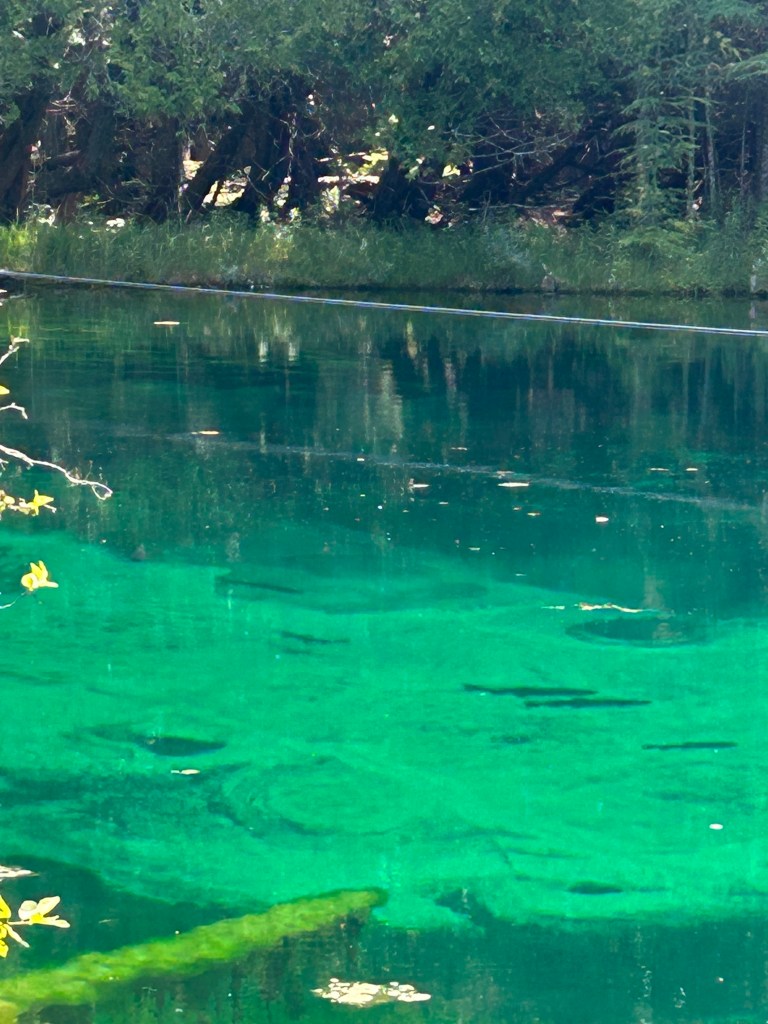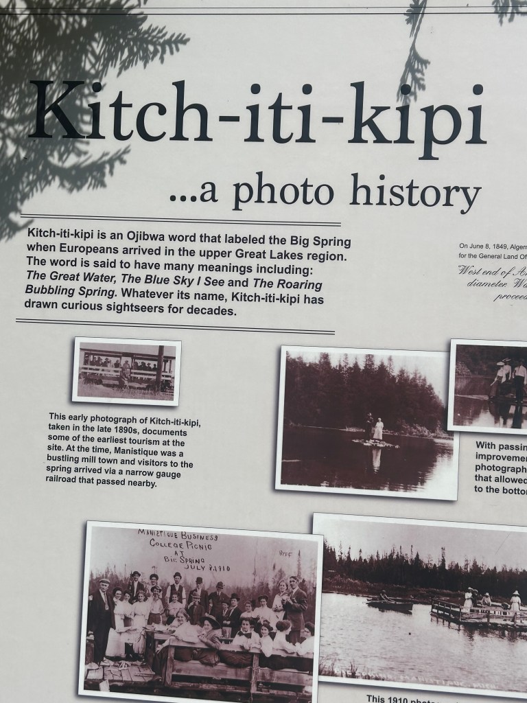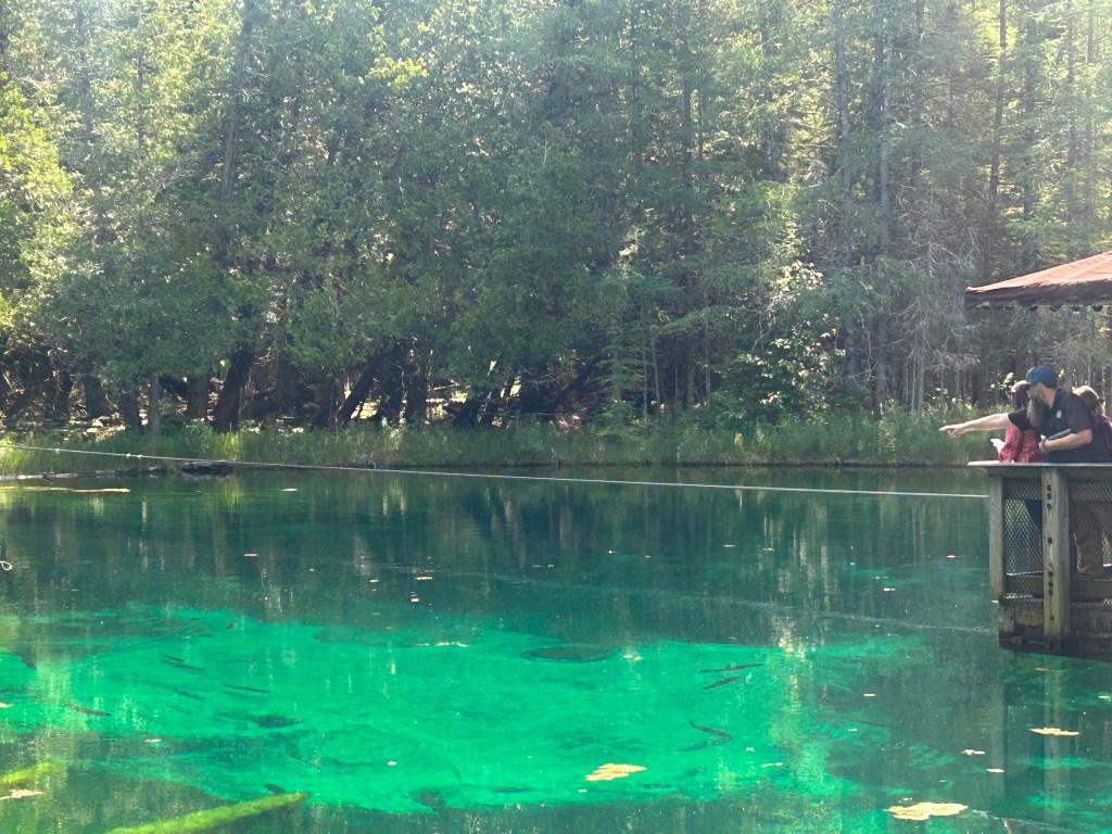 We left for two places we were told we must see while on the Upper Peninsula: Kitch-iti-kipi and Munising on Lake Superior. Kitch-iti-kipi was an unusual, other-worldly emerald green pond surrounded by forest. Apparently, a steady upwelling of water from an underground spring along with some other geological feature including a shallow, sandy bottom created the psychedelic green color. The native Americans have a much more exciting and romantic explanation but I’ll let you look it up.
