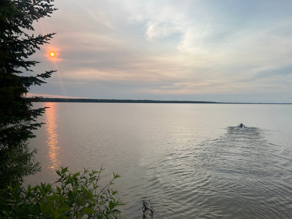 “Are you guys really from California?” she said in a flat Michigan accent, smoke curling up around her hand, fingers curled around a pink beer cozy, a Coors logo peeking out. “Yes” I replied, in staccato formed from a shallow breath intended to minimize the third party smoke encircling us both. This was the next door camp neighbor whose husband had quickly reminded me that dogs were supposed to be on leash, right after we’d arrived yesterday and I’d taken my eye off of Lily for a heartbeat as we were unpacking. This was her attempt at repair and I appreciated it.