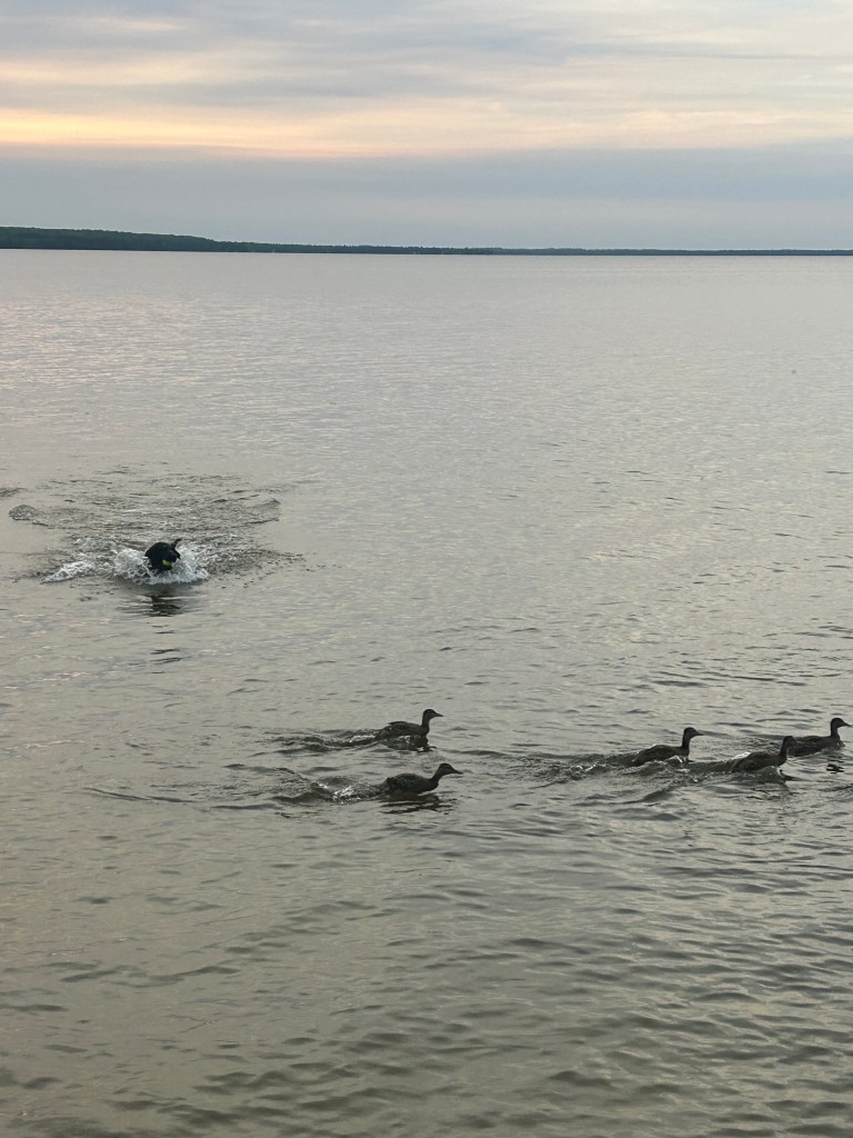 (Even though it looks like Lily is going after the ducks, she isn’t. She missed that DNA. Her entire focus is on the ball–getting and retrieving it.)